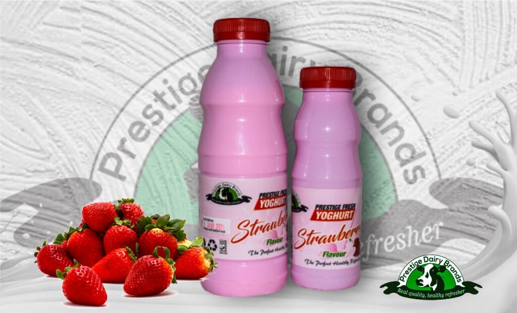 Thick, creamy and nutritious. Enjoy this fermented milk product that is prepared carefully with great experience from the best quality cows milk to yield an excellent taste and flavour leaving you wanting more. The strawberry flavour makes it even much better. It comes in various package sizes from 150 ml, 250ml,500ml, (both cups and bottles) 1 litre and 2 litres and 5 Litres